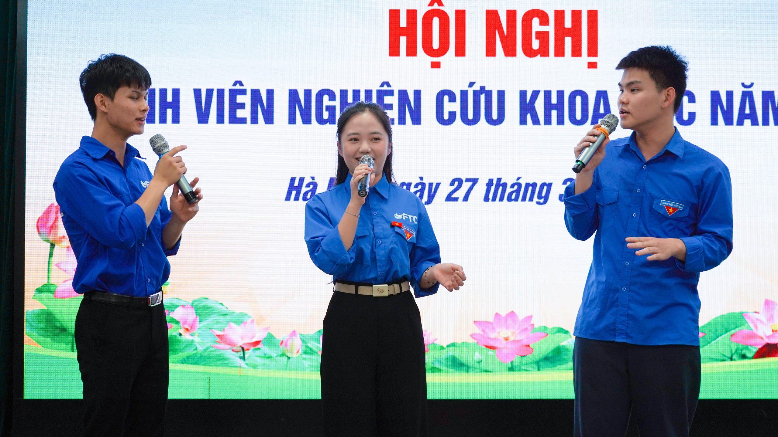 Hội nghị diễn ra với sự tham dự của Ban Giám hiệu, lãnh đạo các khoa, giảng viên hướng dẫn cùng hàng trăm sinh viên tiêu biểu. Ngay từ đầu chương trình, không khí hội trường đã trở nên sôi động với các tiết mục văn nghệ chào mừng đến từ Đoàn Thanh niên, thể hiện sự năng động và tự tin của sinh viên FTC.